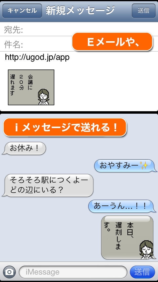 うごくメールは、メッセージを入力することで、面白いシチュエーションに合わせたスタンプを作成することができるアプリです。シンプルにメッセージだけを送るよりも、相手がクスッと笑ってしまうようなスタンプを使うことによって相手とのコミュニケーションがより楽しくなります。人と同じスタンプを使うのは面白くないと感じている方にもおすすめのアプリです。SNS以外にも、メールに添付して使用することができるので様々なシーンで役立ちます。