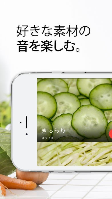 玉ねぎやとんかつなどを素材を選択して、スマートフォンを振ると包丁でこれらを切ったような音を聞くことができます。そのためサクッザグッ、といった音を聞くのが好きな時に有効です。