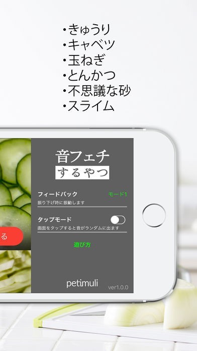 スマホを上下するとキャベツやキュウリが切れた音がする機能
