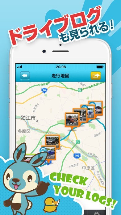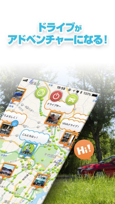「ハイタッチ!drive」は、ドライブがもっと楽しくなるコミュニケーションツールです。運転中の自分や他ユーザーを表示してくれる地図機能を搭載。地図はリアルタイムに更新されるため、近くのユーザーの状況を一目で把握できるのも便利です。自分や友達の居場所を地図で教えられるため、待ち合わせやオフ会の集合などにも活用することができるでしょう。ログ機能も用意されており、擦れ違ったユーザーの車種はコレクションとして自動的に登録が行われます。また、バックグラウンドでの音楽再生機能も充実。好きな音楽を聞きながら、思う存分ドライブを楽しんでみてはいかがでしょうか。