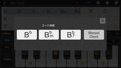 楽曲を再生しながら解析したコードの音も同時に鳴らすことが出来るようになっており、コードが正しく解析できているか確認できるのはもちろん、近い響きの候補から代案を選んで編集もできます。