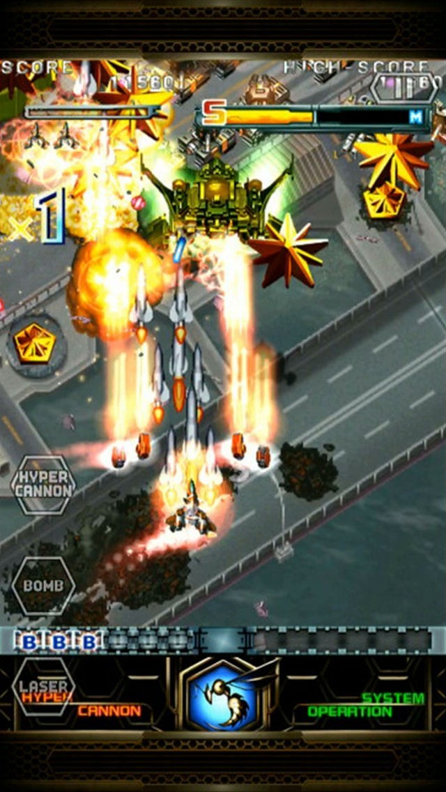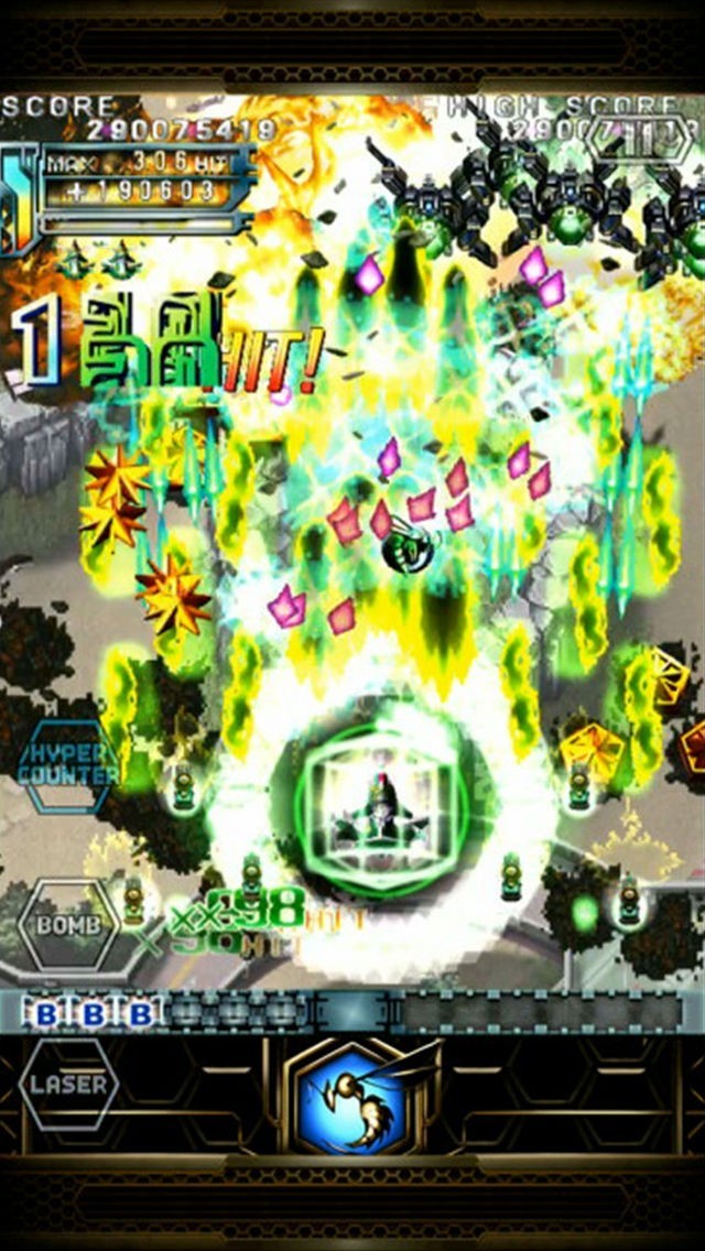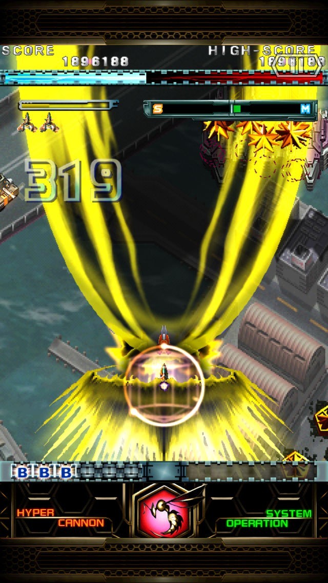 怒首領蜂大復活 HDはアーケードゲームの移植版の縦スクロールシューティングゲームで、スマートフォン専用に作られたBGMのモードや練習モードで楽しむこともできるようになっています。