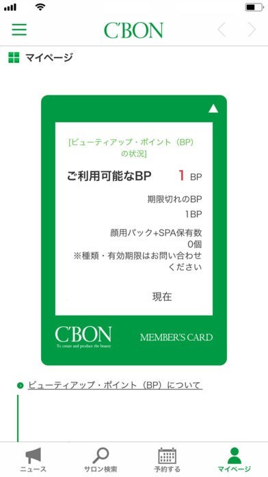 ログイン後のマイページでは保有BP(ビューティアップ・ポイント)の確認ができます。