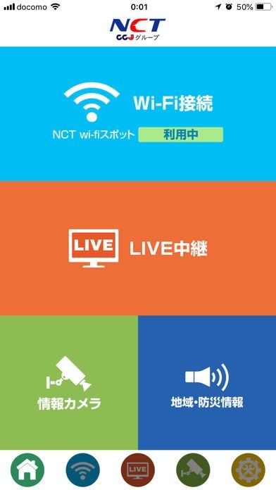 NCTが提供する公衆無線LANに簡単に接続できるほか、地域のまつり・イベントのライブ映像、交通状況を確認できる情報カメラが視聴できます。