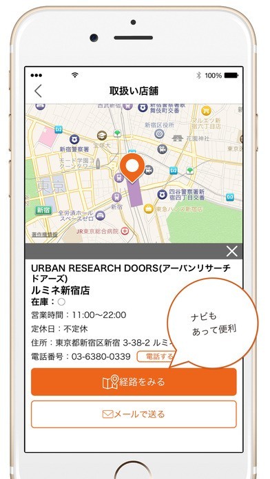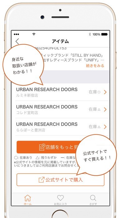 monococoは、たくさんのブランドとの提携でファッションアイテムの比較ができます。アイテムが見つかったら、お店の在庫を確認します。お店に行く前に在庫がある店舗がわかります。取扱店舗は、地図があるので初めてでも迷いません。メールの送信も可能です。