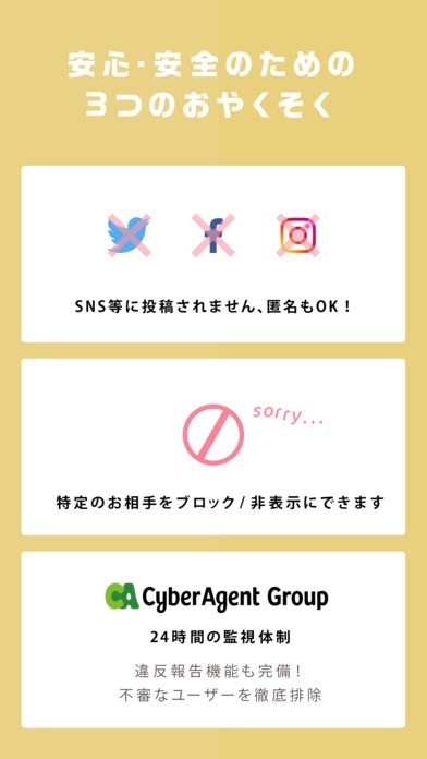 自分のプライバシーを守りつつ、新しい出会いを探せるシステムが魅力です