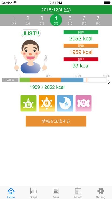 ・キャラクターアイコンが各栄養素の摂取状況を表情で教えてくれるので一目でわかります。