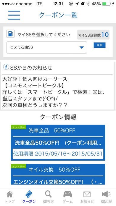 「コスモビークルライフ」は、快適なカーライフをサポートしてくれるコスモ石油公式アプリです。 マイSS機能を搭載しており、よく行くSSを最大10件まで登録可能。 登録中のSSの最新ニュースは、お知らせ機能から手軽に確認できるようになっています。 また、クーポン機能では「コスモ・ザ・カード」会員にお得なクーポンの配信も随時行っています。