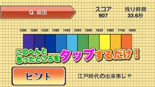 出題に合わせて年表の中のだいたいの場所をタップ!正解に近い位置をタップしてハイスコアを獲得!
