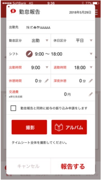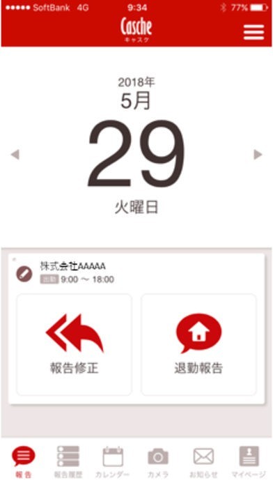 出勤、退勤の報告をアプリから行うことができる機能も搭載されているので、いちいち電話をかけて出勤、退勤の報告をしなくてもスピーディーに仕事をすることが可能になります。