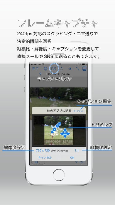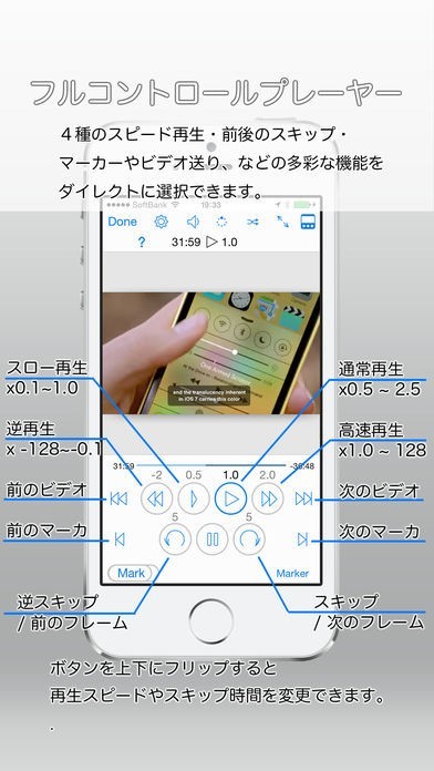 iTunesやカメラアプリの中のビデオを自在に楽しむことができる便利なアプリです。スローにも高速にも自由に再生速度(0.1~128)を変えて、しかも音声付きでビデオを視聴することもできます。
