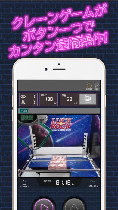 ONLINE CRANE GAME 『LUCK ROCK』とは、インターネットを通じて、スマートフォンやタブレット、パソコンから 24 時間気軽に・いつでも・どこでもカメラの映像を見ながらリアルタイムで本物のクレーンゲームが遊べるオンラインサービスです!