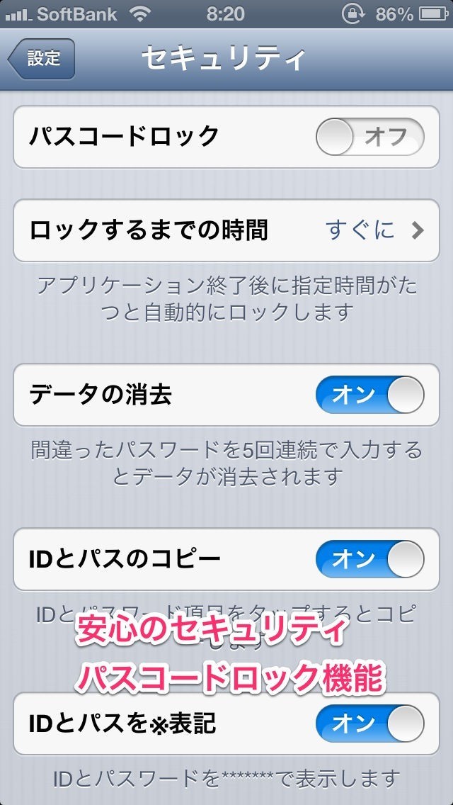 ・アプリにパスワードを設定できます