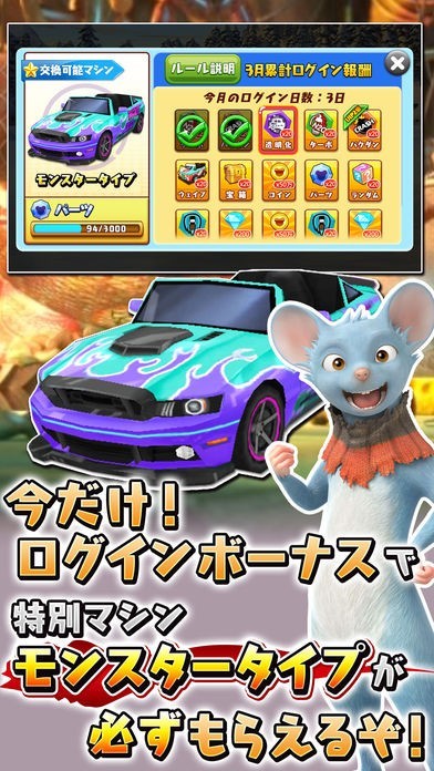 「GAMBA RACER(ガンバレーサー)」はフル3DCGアニメーション映画の劇場版「GAMBA -ガンバの大冒険-」の公式スマートフォンゲームです。映画に登場するキャラクターが登場するファン必見のアプリとなっていて、マシンを自由にカスタマイズしてレースに挑むことができるようになっています。レースで手に入れることが出来るコインを使ってマシンをパワーアップさせることができるので、確実にコインを手に入れることがゲーム攻略のポイントになります。レースに勝利することで新しいストーリーが解放されて、新たな仲間やマシンを手に入れることができます。