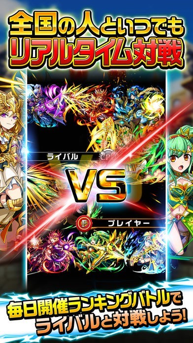 同色をそろえて消して攻撃力アップ、というゲームアプリではスタンダードなシステム。パズドラ好きとかならやってみてもいいかと。