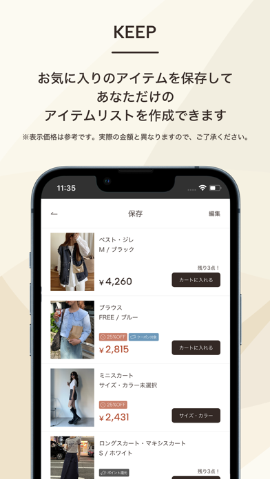 また、お気に入りの商品を保存することで、あなただけのアイテムリストが作成できます。