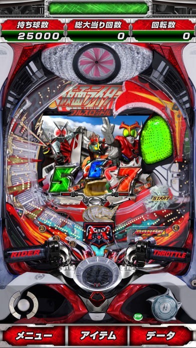 スマートフォンでぱちんこ仮面ライダー フルスロットルをシミュレーションできる