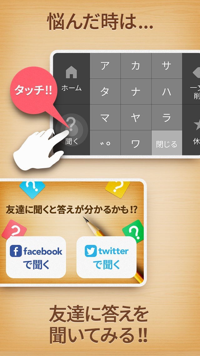 クロスワードに挑戦出来ると同時に、SNSを通して友達と協力出来るのもメリットです