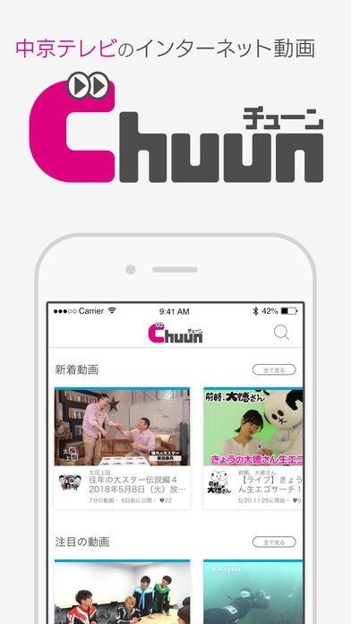 「Chuun」では、中京テレビが放送した番組の配信を行っています。4.1CH、3.9チCH、ニュースCHの3ジャンルに分かれて配信を行っており、無料での利用が可能。4.1CHでは地上波で放送したドラマやバラエティなどを取り扱い、見逃し配信としてお気に入りの番組をチェックできるのが特徴です。3.9CHはこのアプリならではのオリジナル作品を配信。クリエイターによるオリジナルコンテンツから、これはと思える番組を発見することができるでしょう。ニュースCHでは最新ニュースを取り扱っており、日々の情報を手軽にチェックできます。便利な検索機能も搭載。フリーワード検索から、お気に入り番組も素早く見つけられるようになっています。