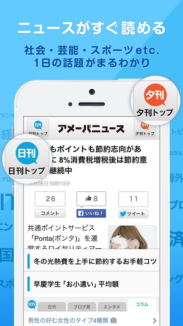 「なう速-最新つぶやきネタ- by Ameba」は、アメーバなうで配信中の情報に対してすぐにコメントすることが出来るアプリです。ニュース・エンタメ・美容関連まで、掲載される話題が幅広いため興味のあるトピックスが見つかりやすいです。写真をデコレーションする機能もついており、編集したオシャレな写真を投稿することも出来ます。同時にツイッターに投稿することが可能なのでフォロワー達と意見を共有することも出来ます。また、アプリ内では2択のアンケートが実施されており、ユーザー達と意見の交換をして楽しむことが出来ます。