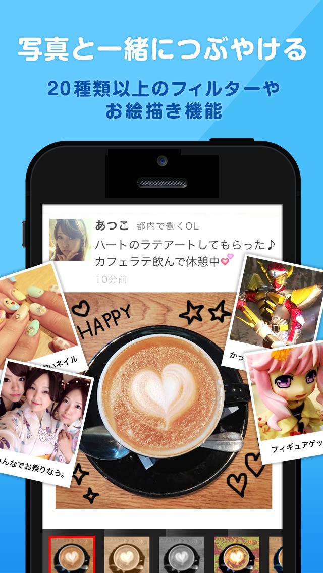 メリット:最新情報を誰よりも早くツイートできます。写真の加工や落書きなど付帯機能も充実しています。人気のつぶやきを確認する事ができます。