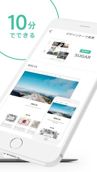 スマートフォンでホームページが作成でき、テンプレートを使用するとさらにスピーディです。
