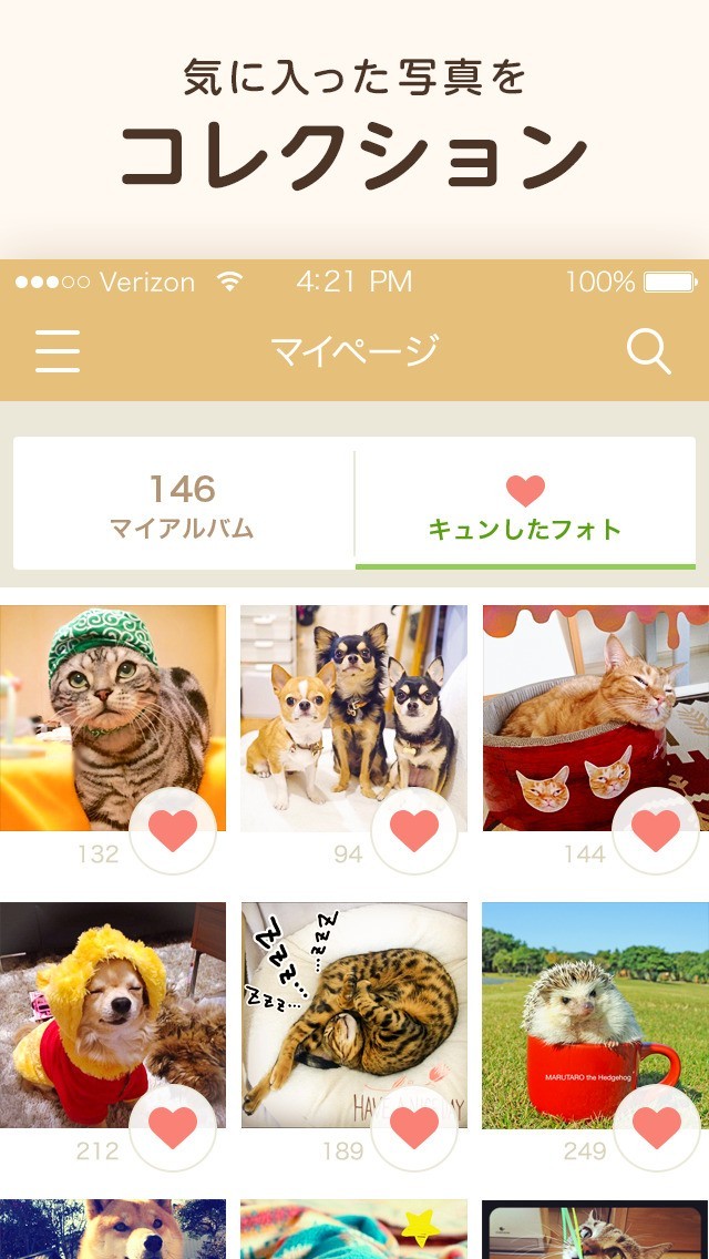 写真数400万枚を超えている「パシャっとmyペット」ではたくさんの写真をアップロードすることによってそれらをまとめてアルバムにすることが出来ることから、バックアップとしての機能も果たしますし、あとで見直すのにも便利です。 写真はかわいく出来るようなスタンプなどを使えたりするので、そのようなものを使ってみるのも楽しいです。 加えて、飼い主の方同士で質問したり話したりできるので、情報交換したりもできますし、場合によっては病院についてなど命についてのお話も聞くことができます。 また、ハートマークをタップすることで、キュンとした写真としてそのようなものだけをあとからチェックもできます。