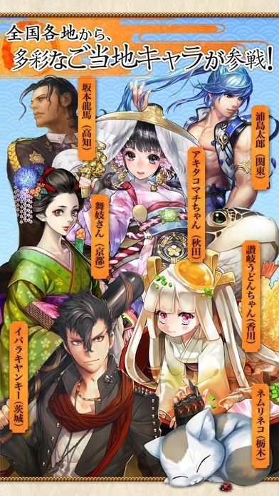 日本のいろんな偉人や名産を元にしたキャラクターが登場します。なんともユニークなアイデアです。そのキャラクターたちが魅力的なので集めるのもハマってしまいそうです。