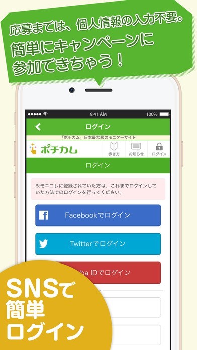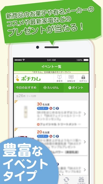 本アプリは懸賞に応募してプレゼントをゲットできたり、ポイントを貯めてギフトカード等と交換可能なアプリになっています。 登録不要で豊富なイベントやキャンペーン情報を見て自分の気になったものにすぐ応募できるようになっていて、気軽に懸賞生活を楽しめます。 スマホだけでなく、PCにも対応していて生活のあらゆる場面で情報を閲覧できます。 懸賞だけでなく、投票ランキングや参加型のイベントもあり自分の生活がより豊かになること間違いなしです。