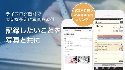 ライフログ機能搭載。カレンダーへの写真添付で思い出の記録としても活用可能!