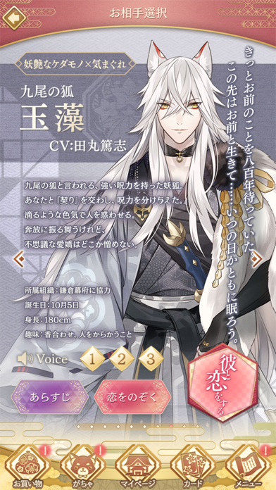 App Storeより引用源頼朝や義経、九尾の狐など…鎌倉時代の彼らとの、切なくも情熱的な恋愛ストーリーを体験しよう!