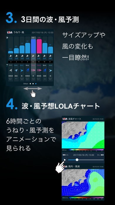 波のサイズを確認する事が可能で、各地の風予報が調べられるのも利点でした