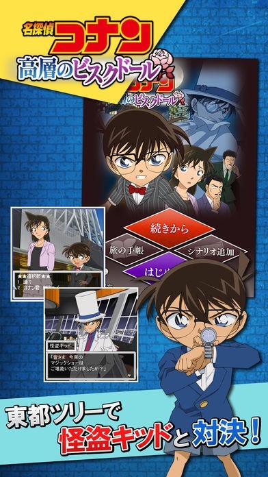このアプリは、週刊少年サンデーで連載されている、事件を追っていた高校生が、クスリを飲まされて小さくなり、身分を隠しながら数々の事件を解いていく作品が基になったゲームです。