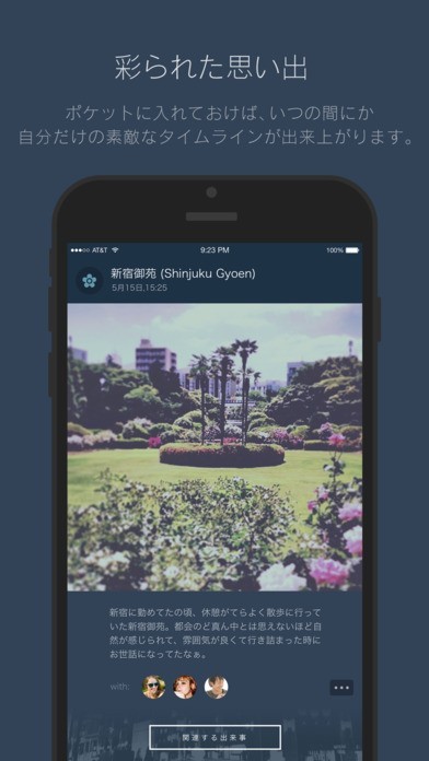 あなたの写真と訪れた場所から自動で作成される美しいタイムラインに素敵なキャプションを綴り、より日常をクリエイティブに仕上げましょう。