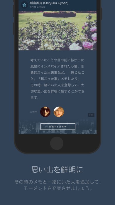 基本的なプライベートなあなたの思い出も、必要であればSNSやメッセージで友達に共有することができます。友達と一緒にいた時間に写真を撮っていなくてもあとでその場所の写真とキャプションを添えて共有できます。