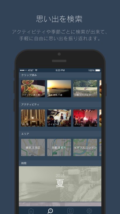 各モーメントはエリアやアクティビティ、時間から自動で分類されます。見返したい思い出にすぐにアクセスすることができます
