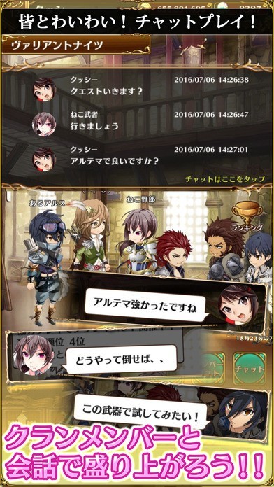 オートバトルで楽に遊べるファンタジーRPG「ヴァリアントナイツ(Valiant Knights)~光と闇の覚醒~」は、4人での協力プレイも実装。リアルタイムで進行する協力プレイ中は、皆で楽しくお喋りするためのチャット機能も充実しています。自分でのバトル操作はフリックのみ使用。初心者から上級者まで、レベルに合わせて遊べるゲームとなっています。キャラクターには人気声優を起用し、ボイス付きストーリーを楽しむことができます!