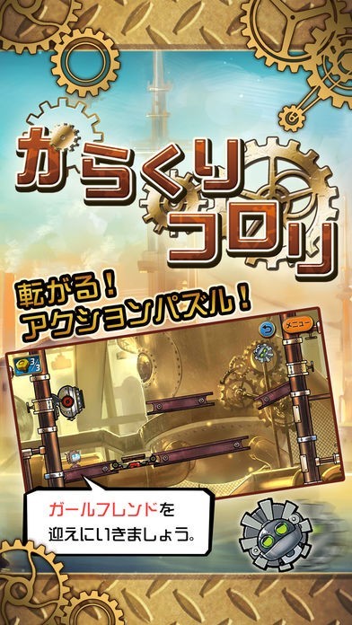 ギア型ロボットの主人公コロリを転がし、彼女がいる場所まで連れて行くことが目的のゲームです。バネがついたマンホールや、巨大送風機などのからくりがいっぱいな工場をコロコロと転がっていくのですが、ただ転がって彼女に会いにいくだけではダメです。道中で手に入るネジも全部取りながら進めば後で役に立ちます。からくりのタイミングをよく見て、コロリをうまくゴールまで導きましょう。操作は端末を傾けるだけでの簡単操作です。ちゃんと頭を使って進まなければゴールまで辿り着けない仕様になっています。