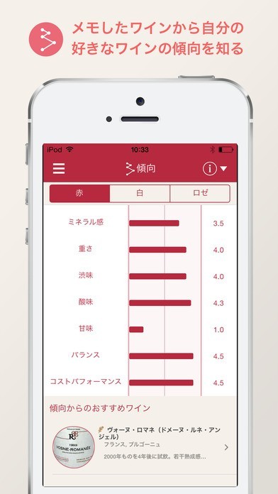 ・登録したワインから自分の好きなワインの傾向を知る事が出来ます。