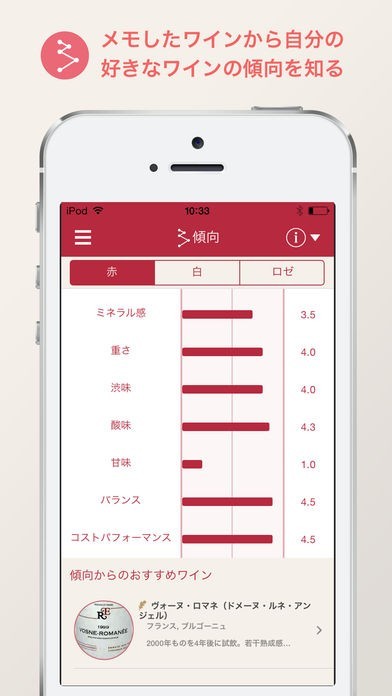 【4.ワインを自分だけのノートに記録できる。アプリが分析してオススメワインも!】