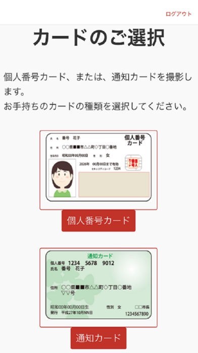 マイナンバーを記載した個人番号カード、通知カードのどちらかが手元にあれば、内蔵カメラの文字認識機能を利用可能です。撮影がうまくいかない場合も操作を一からやり直しせずに、何度でも撮り直しができます。