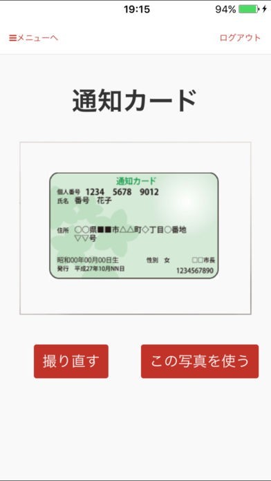 個人番号カードや本人確認書類をカメラで撮影!何度でも撮影しなおせる!データは暗号化で安全!