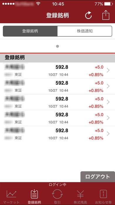 オンライントレードで登録している銘柄リストをアプリで取得できたり、アプリで登録した銘柄をオンライントレードで取得することもできるので、簡単に両者で共有できます。