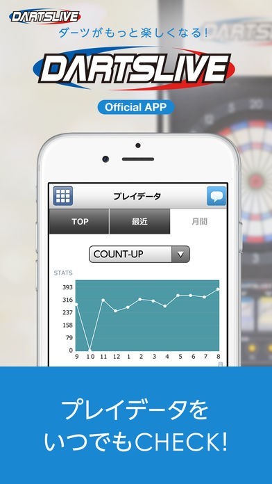 DARTSLIVEの対戦成績を記録に残せるアプリです。過去の成績をグラフ表示にて閲覧することもできるので、自分のダーツの腕前の上達度を確認したりしてモチベーション管理することができます。