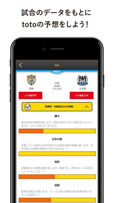 選手名鑑に分析データが記載されているので、Jリーグの観戦を楽しめる。