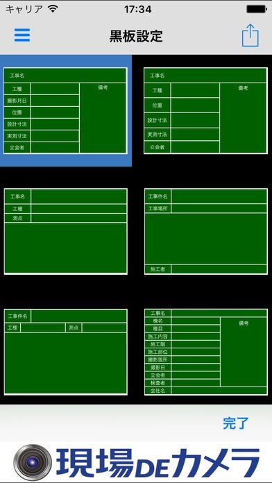 工事現場で写真を撮影する時に役立つカメラアプリです。電子小黒板を表示させることができ、黒板の種類や背景の色を変更することも可能なので、黒板を持ち歩く必要もなく使い慣れた黒板感覚で使用することができます。撮影の解像度も変更することができるので、容量を小さくしなければならない電子納品用の写真も撮ることができます。 オンラインストレージに写真をアップロードすれば、現場にいなくてもすぐに写真を確認したり整理することもできます。