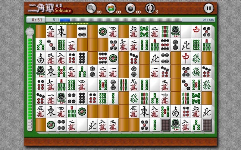 App Storeより引用麻雀牌を使った定番ソリティアゲーム :「二角取りSolitaire」Lite版