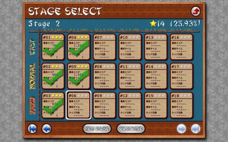 ②18種類のゲーム難易度:易しい,ふつう,難しい × 牌配列サイズ