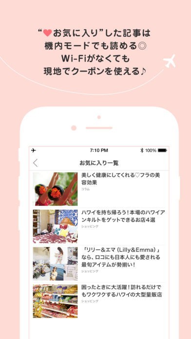 作成したお気に入りリストは、飛行機の中やWi-Fiがない環境でも閲覧できるので、現地でクーポンを使うときも便利です。