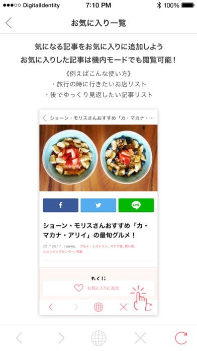 ◯お気に入りリストは飛行機の中やWi-Fiがない環境でも閲覧可能!